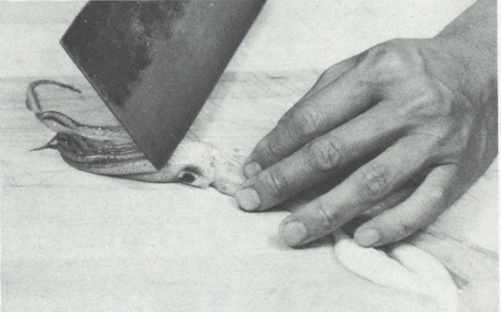 Cleaning squid is not difficult, but it takes time. Fortunately, it can be done hours ahead. Properly cooked, squid has a firm texture, not unlike lobster, and a mild flavor. The Chinese often call it “poor man’s lobster,” as it is one of the least expensive seafoods available.