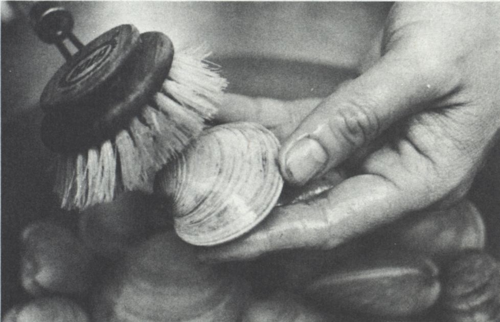 Scrub the grit from the clam shells under running water. Feel the weight of each clam. If it feels especially light, discard it; the clam is dead.