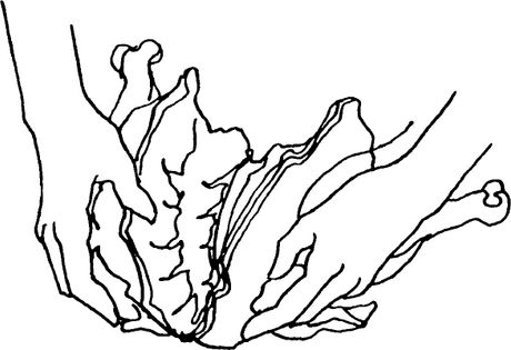 Sit bird up, its back to you, its tail portion down. Using a cleaver, cut downward from the spinal joint. When you have cut through, use your hands to pull the chicken apart. With cleaver cut the center joint of the breast bone. The bird is now cut into halves. Cut off the thighs and wings at their joints. Cut each half of the body into halves lengthwise, then cut these lengths into bite-size pieces.