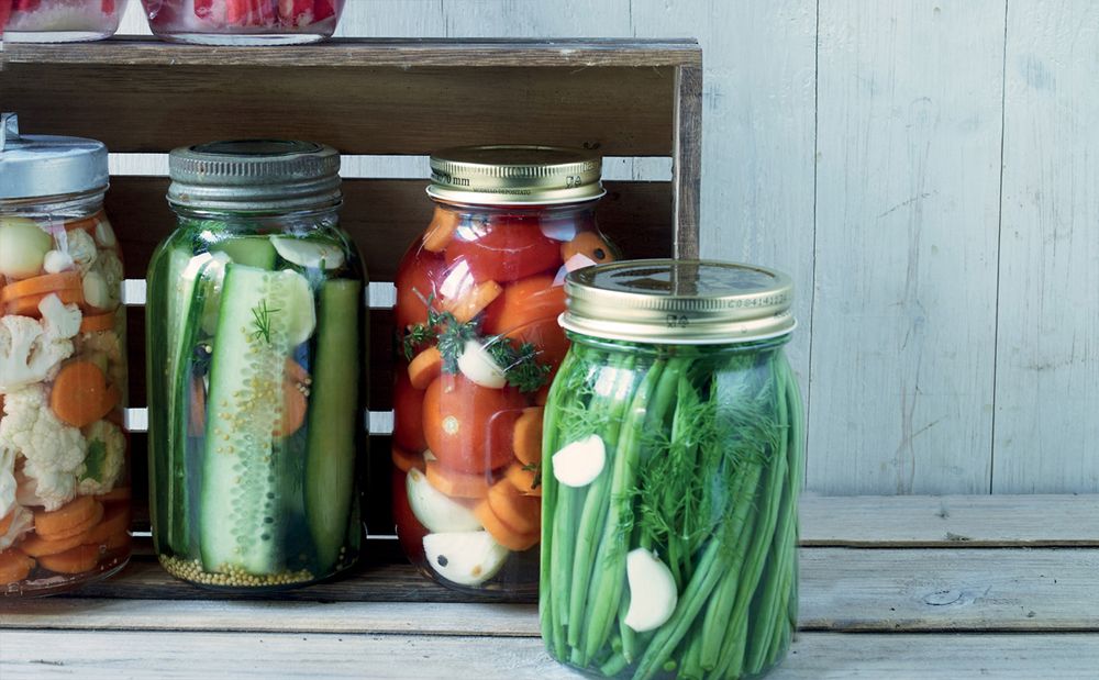 Next up are the brine ferments. Brine-fermented pickles should not be confused with the traditional pickles found in the aisles of supermarkets. These commercial pickles are made with vinegar and sugar, and by pouring boiling water over the vegetables and in that way killing most of the good bacteria. When the vegetables are then put into the vinegar the rest of the bacteria are killed so there is no fermentation going on. Any pickled vegetables you find on a shelf in a supermarket and not in a fridge are all pickled with vinegar and contain no healthy bacteria. In contrast our brine-fermented pickles are made with water and salt only, and contain all the amazing health benefits talked about earlier. Brine fermentation suits large pieces of vegetables that you cannot get the water out of very easily by massaging or pounding. It is also suitable if you want to ferment the vegetables whole or cut into specific shapes. This also means you can create amazing patterns in your jar with careful positioning of the various ingredients.