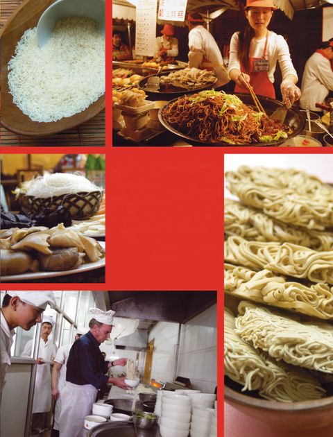 With Italian pasta, you know that you have the wide strips of tagliatelle and you have the thin, rounded spaghetti style of pasta. However, in China they also make noodles from rice flour, not just wheat flour, so the rice flour noodles, often referred to as glass noodles, are very fine and not dissimilar to Italian vermicelli. The rice noodles are particularly good in soups and hotpots, but for the trencherman, the big, flat, wheat noodles will appease the most hungry appetite. In my view, for making fried noodle dishes you should use the thin egg and wheat noodles. The thick noodles work terribly well in sumptuous bowls of noodle soup, while the thin ones, crisply fried, are more refined and gastronomically elegant.