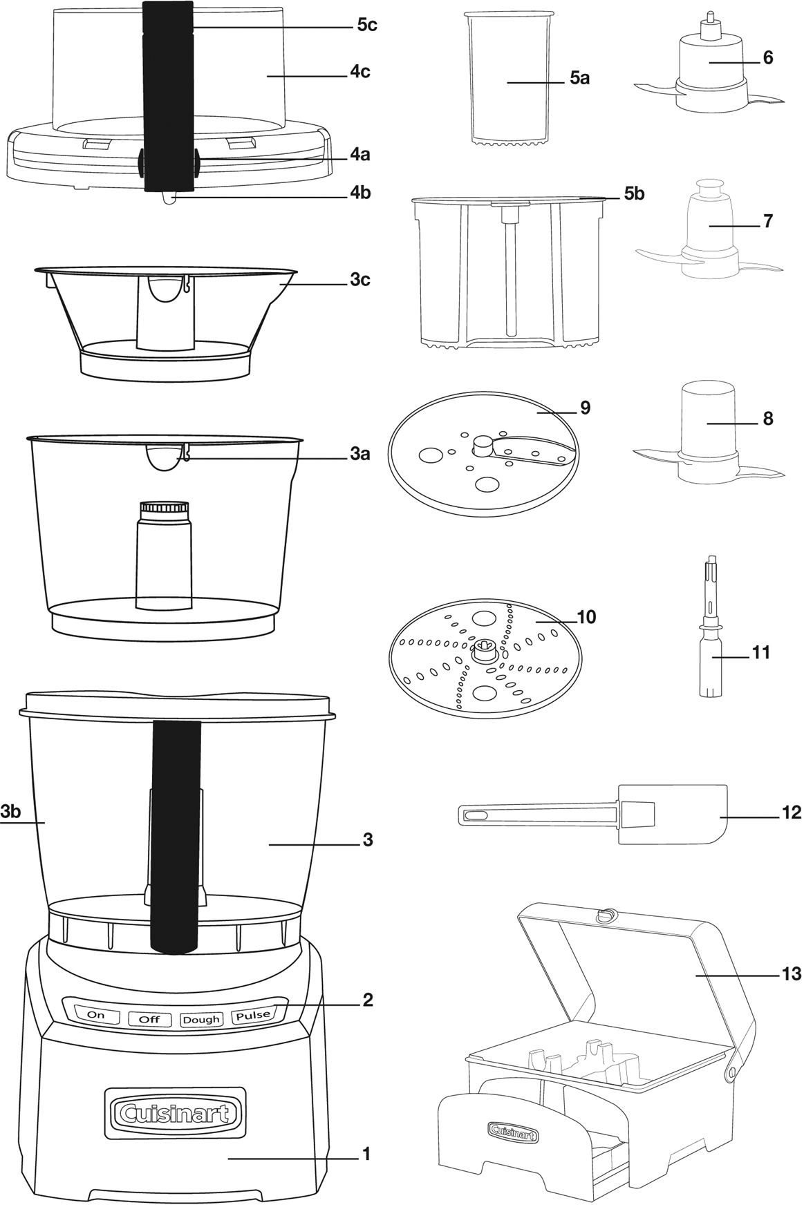 The following components are found on most brands of food processors. I’ve also included features found on the newest generation of processors. (See illustrations on pages 2 and 13.)