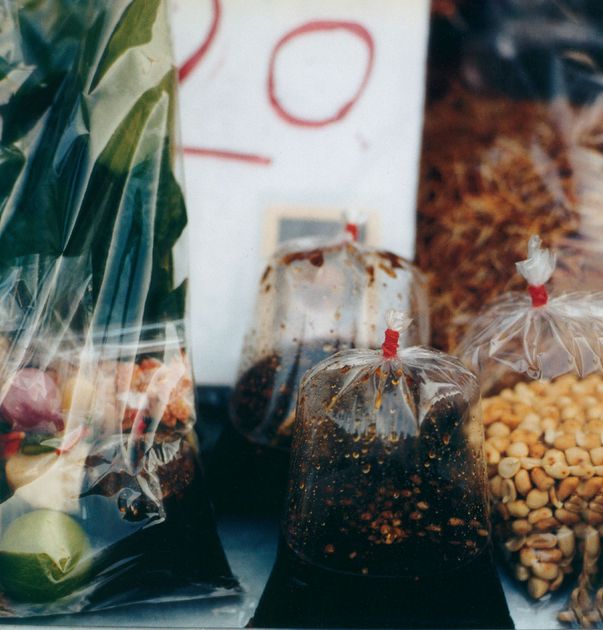 Hot, sweet, salty and sour wraps, mien kum, are sold by hawkers in their components, neatly poly-bagged in kit form, for home assembly.