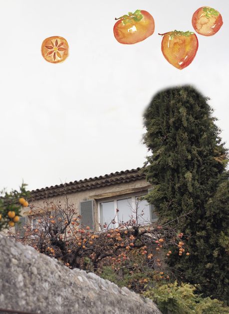 ripe persimmon tree in Saint-Paul-de-Vence, France