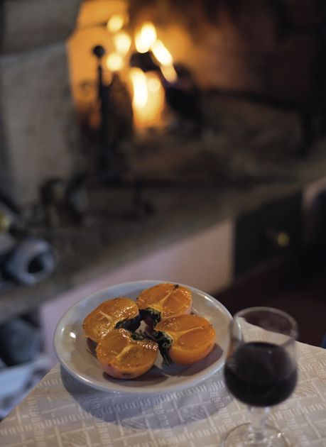 Persimmons for dessert at Agriturismo Bergi, Castelbuono, Sicily
