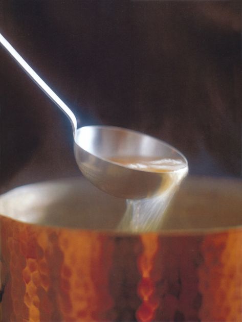 The foundation of French savoury cooking is stocks derived from meat, poultry, game, fish and vegetables. Stocks are the basis of many soups and hot sauces while they contribute to the formation of a sauce in braising, poaching and sautéing. Most stocks need lengthy cooking and frequent skimming to cleanse the liquid of impurities. Partial Clarification of the stock will occur naturally with slow cooking and skimming to produce a first-grade result.