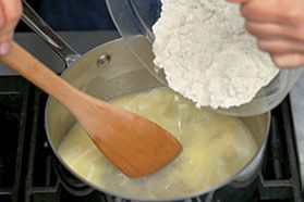 Bread flour or another high-protein flour may be used to create an adequate gluten structure to contain the air, fat, and steam during baking, but all-purpose is more often used. (Bread flour contains approximately 13 percent protein, as compared to pastry or cake flour with protein content that falls between 6 and 9 percent.) If a pastry or cake flour is used, the dough will tear during baking.
