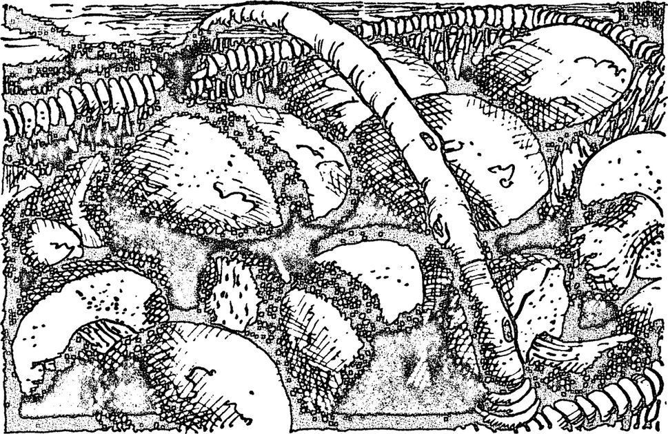 SOME SPECIES OF mushroom are admittedly deadly poisonous and others will make you feel more or less ill; on the other hand, some of the most highly prized varieties are impossible to confuse with the dangerous ones, and this happens to be particularly true of those which grow quite commonly in South-West France. If you go to the market in any country town you will usually find some of the farmer’s wives with a basket of whatever mushroom happens to be seasonal, and you will soon learn to identify the varieties quite easily. Because the seasons of the different species seldom overlap, you will find that any variety is referred to simply as champignon, confusing, as the word does not refer only to what we understand by a field mushroom. The French use the word rather as they do gibier, which means anything wild that moves on however many legs, so long as it can be eaten.