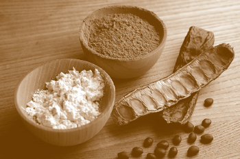 Guar gum and locust bean gum are from the endosperm of beans growing in pods that look much like string beans or pea pods. Guar gum is from the beans of a plant (Cyamopsis tetragonoloba) that grows in India and Pakistan. Locust bean gum, also called carob gum, is from the beans of an evergreen tree (Ceratonia siliqua) originally from the Mediterranean. While locust bean gum is from the bean, another food ingredient, carob powder, is from the pod that contains the locust beans (Figure 12.3). To make carob powder, also called carob flour, the beans are removed and the pods are roasted and ground. Carob powder is sometimes used as a cocoa powder substitute.