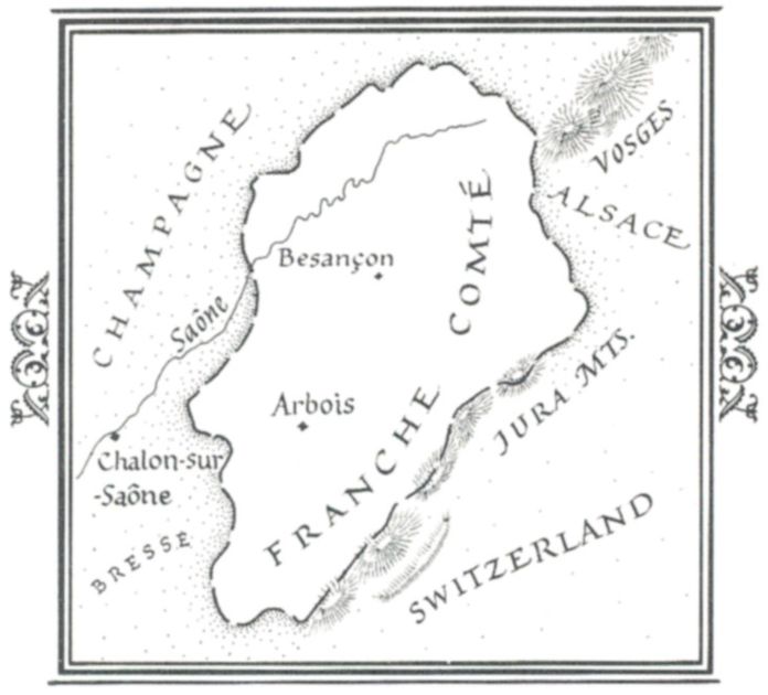 A hilly area in the gap between the Jura and Vosges mountains, the Franche-Comté (name derived from the area’s once having been a “FreeCounty” of Burgundy) sits astride one of the major commercial and military routes of central Europe. Because of its strategic location near the spot where Germany, Switzerland, and France meet, it was perennially invaded throughout history and only finally became a part of France in 1678. In the Middle Ages and thereafter, the powers of Europe also sought to control it to exploit and market its extensive salt deposits.