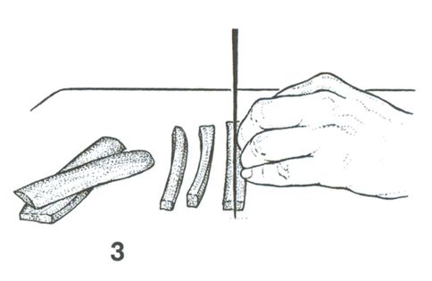 - Cut each length into 3 or more lengthwise slices, depending on the thickness.