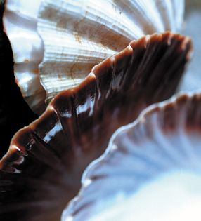 Of all mollusks, the scallop is the one that leads the most interesting life. While the oyster and mussel are confined to a still life, attached to a piece of rock—oblivious of a world beyond that of open mouths, and unable to move around if they grow discontented—the scallop is able to take control of its own life. It does so by snapping its upper valve firmly shut with its powerful oversize adductor muscle and thus expelling water through its fan-shaped shell. The jet stream it produces can propel it as far as three feet at a time, making it as mobile as most crustaceans. When it is not jetting around from one place to another looking for adventure, it is demonstrating its freedom to do so by jumping up and down on the sea bank. If you are diving off the coast of Norway, you may be lucky enough to come across a sandbank full of dancing scallops, an unbelievably beautiful underwater ballet.