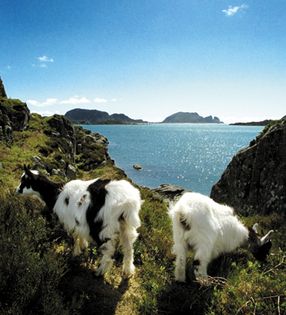 Suddenly I am surrounded by goats. One offers her head for me to scratch, another nibbles at my trousers, and a third investigates my shoes, without finding anything of interest. When Lars Tyssebotn, a sturdy farmer in his late forties, lets his goats out in the morning, nothing even remotely edible is safe. The goats crowd the hillside and will not let anybody, particularly not an exotic city boy like me with funny clothes and funny smells of unknown things, pass without a thorough inspection.