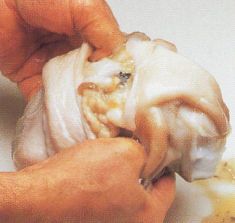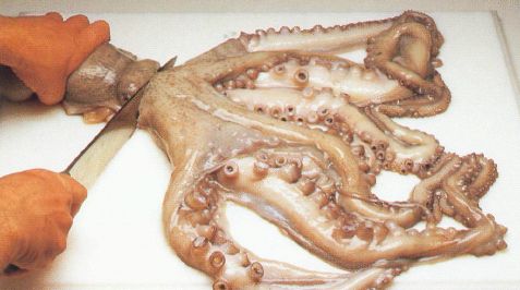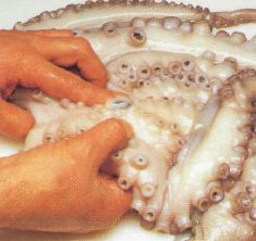 After cleaning, octopus and large squid must be tenderized by pounding, or parboiling for 30-40 minutes in court bouillon.