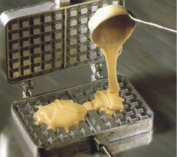 Heat the waffle iron. Pour the batter on to cover about two-thirds of the iron, close it and wipe off any excess batter.