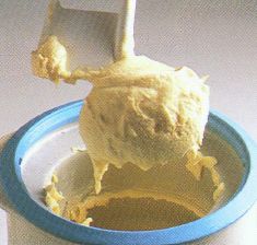 Add whipped egg white (to sorbet) or flavorings like chocolate chips (to ice cream) when the mixture starts to stiffen. Continue churning until stiff- many electric machines stop automatically. Remove the paddle. Pack down the mixture, or transfer it to a chilled container or mold, and store it in the freezer until needed.