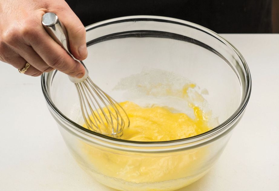 Beat the egg and sugar mixture until thick and foamy. I suggest using a handheld or stand mixer, which will save time.