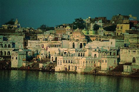 Some hotels and guest houses are in beautiful locations. This was the view, looking across the lake, from our hotel in Pushkar, a town in the Rajasthan desert. In November the town is crowded with visitors to the annual camel fair.