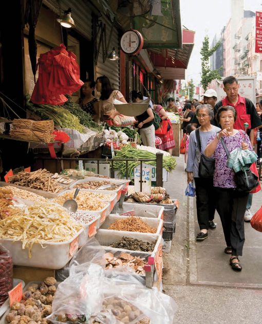 My teaching, my cooking lessons always begin in the Chinese market. Heaps of vegetables, familiar and exotic; the pork butchers; the herbalists and their shops comprise my classroom, my laboratory. In them I find recurring veins of discovery. In them I teach and simultaneously I learn. Sometimes when I am at home in my kitchen, my mind focused on the foods I am preparing, my thoughts will suddenly shift to a particular shop, along a particular street, in my Chinatown. I know that the next time I visit that shop I will find the greenest, smallest, most crisp bok choy, the liveliest striped bass swimming in tanks, and mounds of freshly picked lily bulbs and garlic flown in from China.