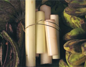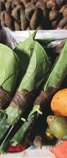 In Jaro, Iloilo, Thursday is market day. Called Huebesan (Jueves is Thursday in Spanish), it is a very old tradition of selling finished goods without a middleman. Vendors from all over the island go from one market to another for a day at a time. All kinds of products are sold: food, rope, tobacco, farming implements, knives of all shapes and sizes, clay pots, and woven mats. Even the people who dabble in superstition and mysticism get their raw materials here. At one table, Rosario Tuam presides over herbals and exotic items called anting-anting, amulets to ward off evil or bring good luck to the wearer. Tiny bottles filled with red seeds, dried strands of bark or root are an antidote for desperate people, “para sa mga sawi,” who believe that someone has put a hex on them. In larger dark bottles is a tonic she calls Vino Agoso, “para sa nerbiyos” (for the nerves) made from cocoa, banana bark, and sugar. There are the vegetable trademarks of classic Ilonggo cooking: the tambo [bamboo shoot] and ubad [pith of the banana bark], which some vendors recommend cooking with grated native corn, coconut milk, tugabang, saluyot, and takway [all local leaves]. There are baby mangrove crabs (on their way to extinction) and dried fish made with local fish like gumaa for daing [butterflied, dried fish] and the tabagak for tuyo.