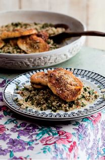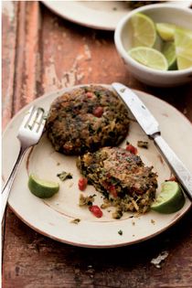 Here are my favourite recipes for a lazy breakfast, early lunch or brunch. They remind me of being on holiday, which is only ever a good thing – when you can get up at your own pace and eat a long, leisurely meal in the early morning. My Baked Eggs with Lentils & Goat’s Cheese take only 15 minutes to make and are a winner every time. Fantastic Cochin Crab Cakes, flavoured with curry leaves and chilli, will transport you to the hot, breezy shores of South India. And my beautifully sweet Villa Dinari Apricots, swollen in orange juice, cinnamon and honey, and served warm with yogurt, can be put together in just 10 minutes. The most a recipe in this chapter will take to prepare and cook is 25 minutes.