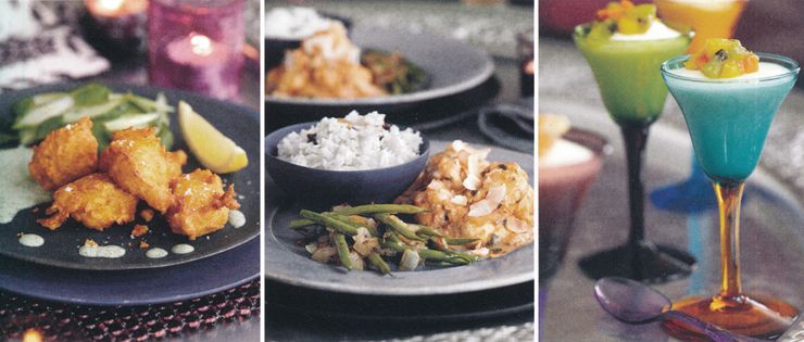 Spicy is always a great way to go for a dinner party: everyone I know loves a curry. Monkfish is delicious for both meat and non-meat eaters and the dessert is very cleansing and exotic. This menu will definitely have your guests singing your praises.