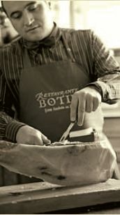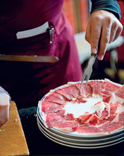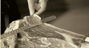 There is an art to cutting jamón properly, and the master of this art is called a cortador. Cortadores cut wafer-thin slices along the grain, creating pieces around