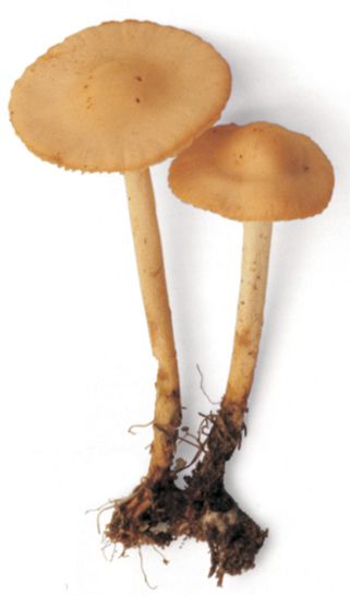 Usually small, often tiny, with tall, thin stems and caps that, unlike those of Mycena are generally not conical; some resemble tiny umbrellas or parachutes, and the latter has been taken up as the common name for the genus. They are tough and leathery; if dried out, they will revive on wetting.