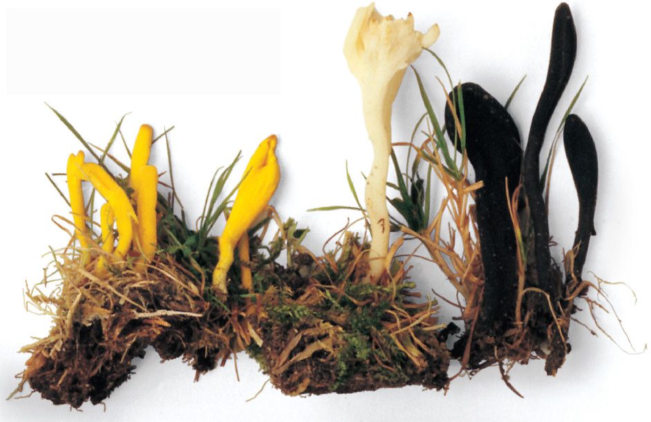 (left to right) Clavaria, club fungi, and Geoglossum 50% life size