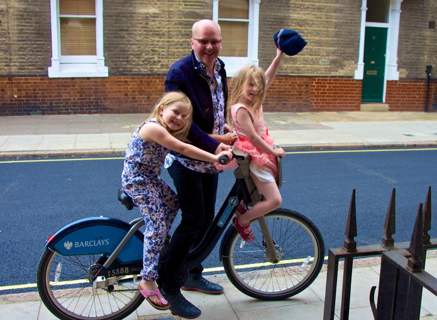 Pedalling hard: David Moore with daughters Fauve and Frankie