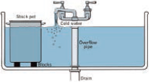- Run cold water into the sink, but not higher than the level of the stock, or the pot will become unsteady. An overflow pipe keeps the water level right and allows for constant circulation of cold water (see image).