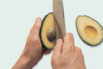 Preparation: Ripen at room temperature, 2 to 5 days. Cut in half lengthwise and remove pit (see Figure 10.4). Peel (skin pulls away easily from ripe fruit). Dip into or rub with lemon juice immediately to prevent browning.
