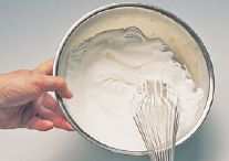 The cream has reached the soft-peak stage. Stop at this stage if the cream is to be folded into a batter or other mixture.