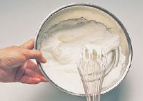 The formation of scum or skin on top of heated milk or milk sauces is caused by coagulation of proteins in contact with air. Prevent it by covering the utensil or by coating the surface with a layer of melted fat.