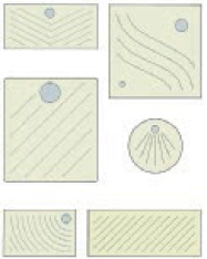 One way to start a sketch is to divide the platter into six or eight equal parts, as in Figure 29.1. This helps you avoid lopsided or crooked arrangements by giving you equally spaced markers as guides. It is relatively easy, then, to sketch in a balanced, symmetrical layout, as the examples show.
