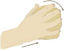 Figure 31.1 To round a piece of dough, roll it on the bench with the palm of your hand. As you rotate the dough, use the edge of your hand to pinch the dough against the bench. This movement stretches the surface of the dough so it is completely smooth except for a seam at the bottom where it was pinched together.