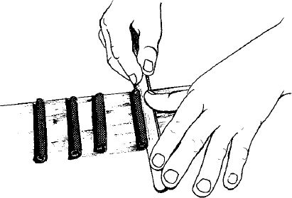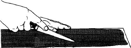 Hold a long knife or palette knife at a 45-degree angle to the surface and push the knife away from you to cut off and curl about 1 inch (2.5 cm) of the strip (Figures 10-3 and 10-4).