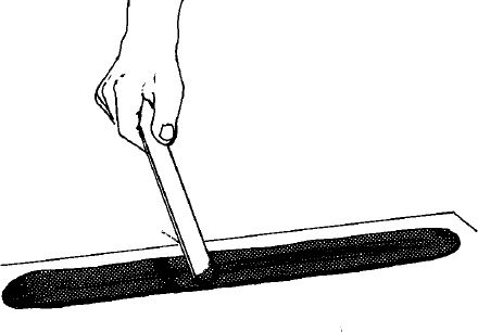 Figure 10-1 The thin strip of chocolate for chocolate curls. The strip is made a bit wider than the desired length of the finished curls.
