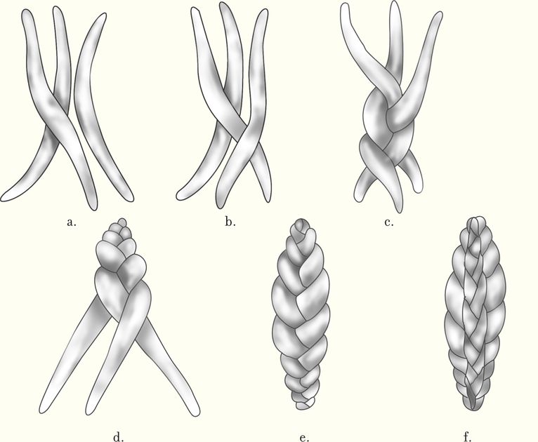 Braid the other half (e).