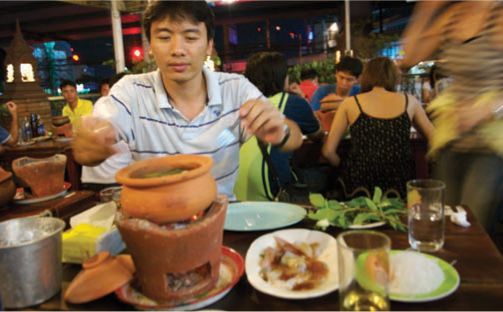 Street foods constitute some of the best one-dish meals. For a quick gustatory pleasure on the run in Vietnam, stop in Hà-Nội, for a bowl of Phở (pronounced like “fuh”), the classic Vietnamese beef noodle soup. It contains meat, vegetables, noodles, broth, and herbs—a complete meal.