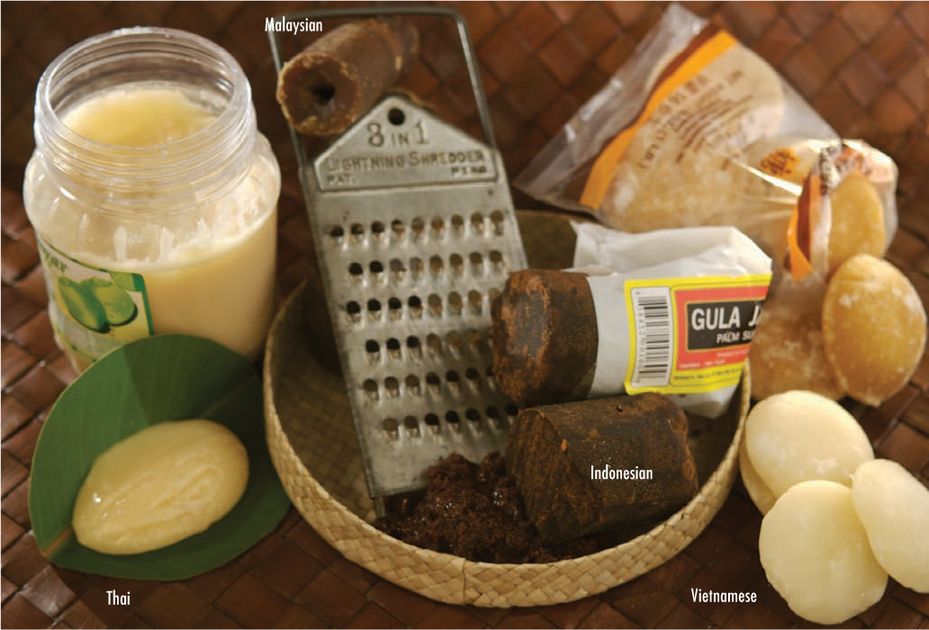 Although all coconut sugar is a type of palm sugar (coconut is a palm tree), not all palm sugar is coconut sugar. Most of the prized Southeast Asian palm sugar is crafted from the Asian Palmyra palm tree, Borassus flabellifer, whereas coconut sugar is from the Cocos nucifera, or coconut tree. Palm sugar is used in Thailand, Malaysia, and Singapore. It’s used to a much lesser extent in Vietnam. Although coconut and palm sugars are made the same way and are used interchangeably by most cooks, Thai dessert specialists prefer coconut sugar for its more subtle taste.