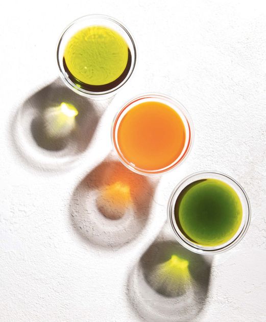 I love to use oils because they can bring another layer of flavor and complexity to a dish. Yes, they also add a dramatic visual element, which I like, too, but I never garnish a dish with an infused oil unless it enhances the flavors. Our oils are almost always made from scraps, a way to use as much of the food as possible. When making chive oil, we use the chives that aren’t beautiful enough to serve but are still full of flavor. We make a lobster oil from the carcass of the lobster. It’s another way to avoid wasting anything.