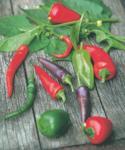 In general small chillies are super-hot and big fat ones arc mild, but there are exceptions to this rule, and in any case heat varies from plant to plant. So avoid unwelcome surprises by tasting a little from the tip before adding a whole load of chilli to your dish. Most green chillies will ripen into red chillies given time. They tend to taste fresher, like a green pepper, while red chillies tend to be warmer, sweeter and fruitier. In most recipes the two are interchangeable. Store chillies in a plastic bag in the fridge and use within a couple of weeks. Or dry them – see TIP.