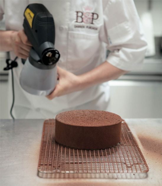 The finish on a cake or dessert after it has been sprayed with a light, delicious mist of liquid chocolate is absolutely stunning. At Sweet Studio we are lucky enough to have a purpose-built room for exactly this job, but of course you don’t need such a luxury if you want to try this technique, and the equipment needed is surprisingly easy to get your hands on.