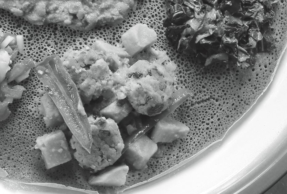 Even though nearly all the other recipes in this book are gluten-free, I’ve chosen to include a gluten-based recipe as an option for soy-free folks and for those who aren’t sensitive to gluten. This recipe is lightly seasoned to be compatible with Ethiopian flavors, and the soft, slow-cooked onion and chickpea flour help give it a great texture that slices well. You’ll also find a recipe for quick chickpea tofu, which is used as an ingredient in various recipes throughout the book, along with a recipe for a tofu patty that’s a great way to use up leftovers.
