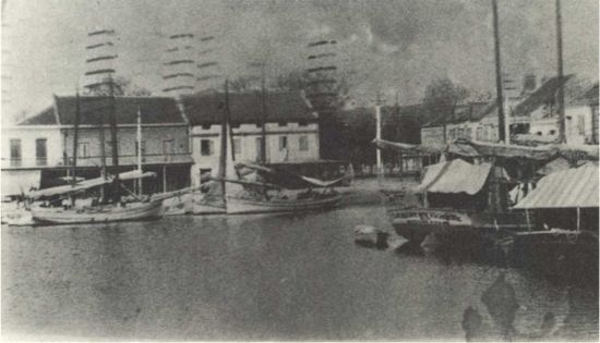 Oyster luggers in the early 1900’s in the Old Basin which has since been filled.