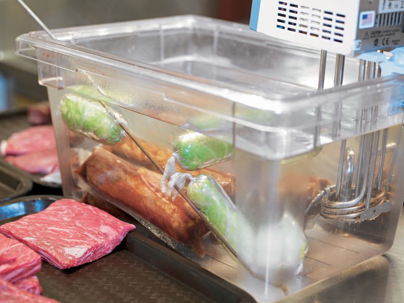 The bacteria we’re mainly concerned with in sous vide cooking are Salmonella, Clostridium botulinum, E. coli O157:H7, and Listeria. All of these bacteria can live in the anaerobic environment of a vacuum-packed bag, and if they do exist in the bag and it is put in warm water, they can multiply to dangerous levels. The longer bacteria are in what is referred to as the “danger zone”—temperatures between 4.4° and 60°C (40° and 140°F)—the faster they multiply and the more dangerous they become. Bacteria grow with exceptional speed at temperatures between about 40° and 50°C (100° and 120°F), doubling in number every 20 to 30 minutes.