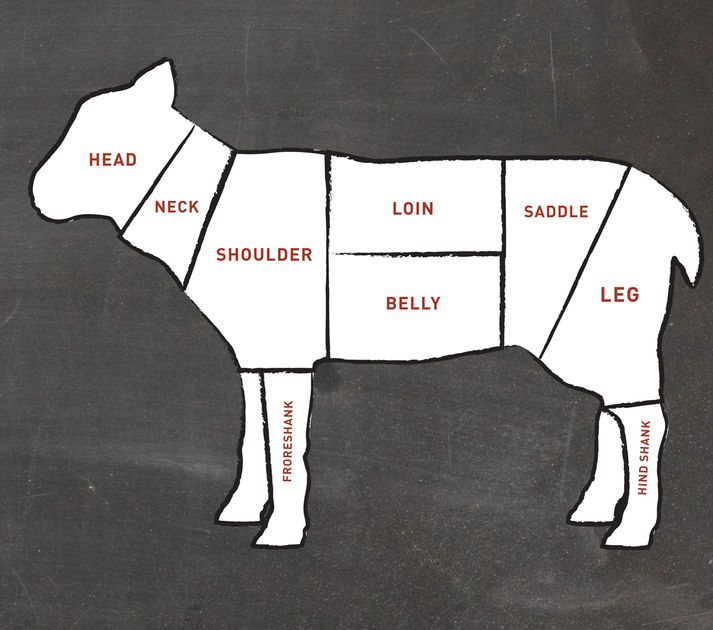 Breaking down a lamb is much easier than butchering a steer or a pig, simply because it’s a smaller animal and easier to maneuver. Although the anatomy is the same, we usually break down a lamb slightly differently. For one thing, each cut is much smaller—think about the difference in the sizes of a beef tenderloin, a pork tenderloin, and a lamb tenderloin. This animal was young at the time of slaughter, so the meat isn’t very fatty and care must be taken when cooking to add fat—whether it’s fat from other parts of the lamb or from butter or cured pork, like bacon or lardo.